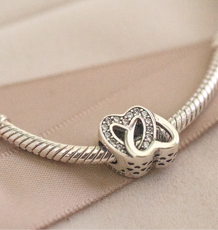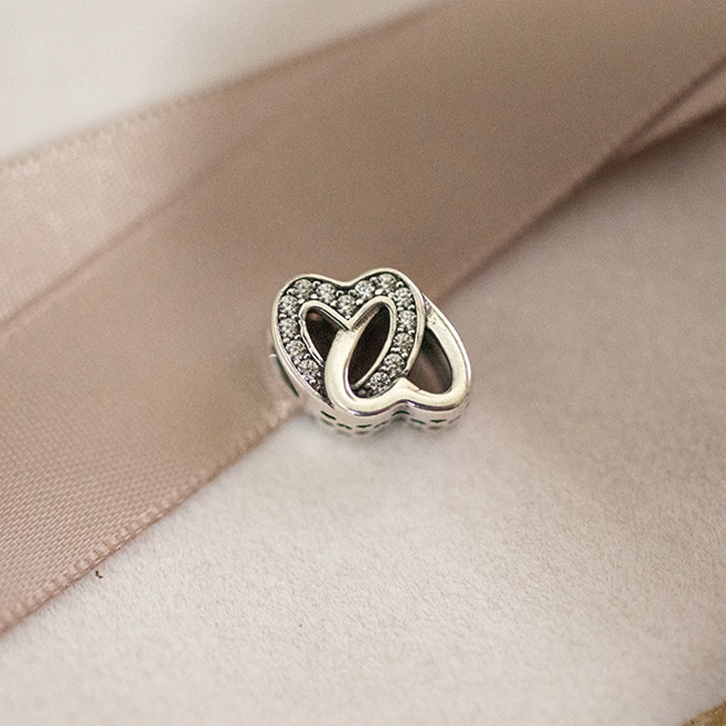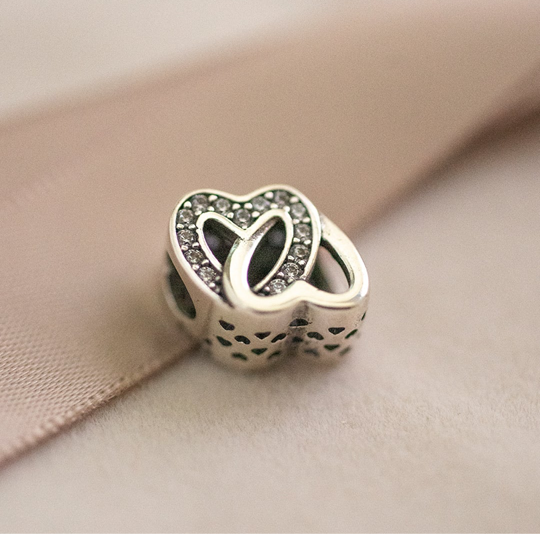 The Agapi Charm is a timeless symbol of love and connection, elegantly crafted to celebrate the bonds that unite us. Made from 925 sterling silver, this charm features two interlocking hearts, one of which is delicately encrusted with sparkling cubic zirconia stones. The intertwined design represents the enduring nature of love, making it a perfect token of affection for a partner, family member, or dear friend.