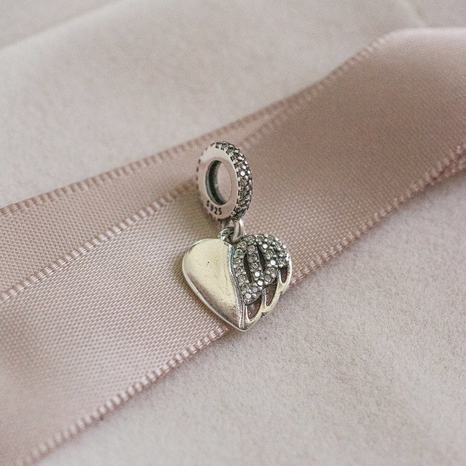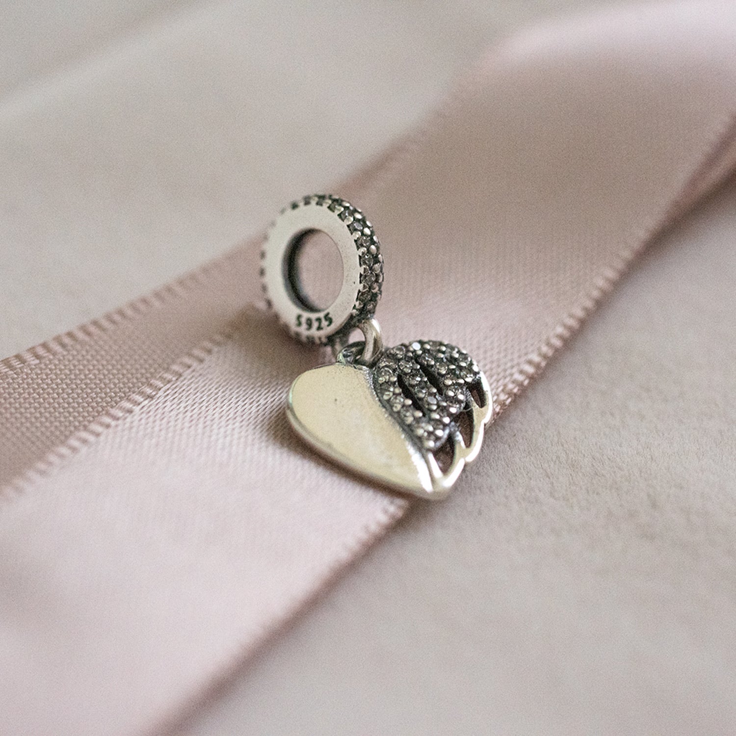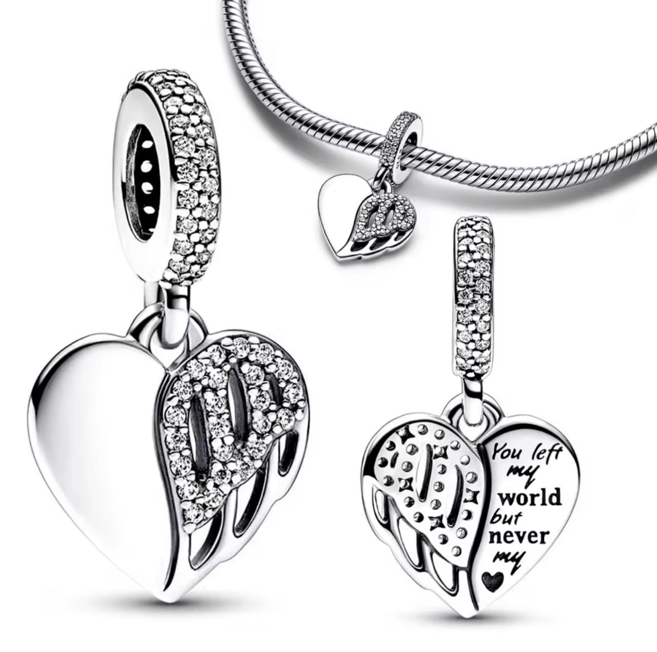 • Design: Heart and angel wing dangle, symbolizing love and protection