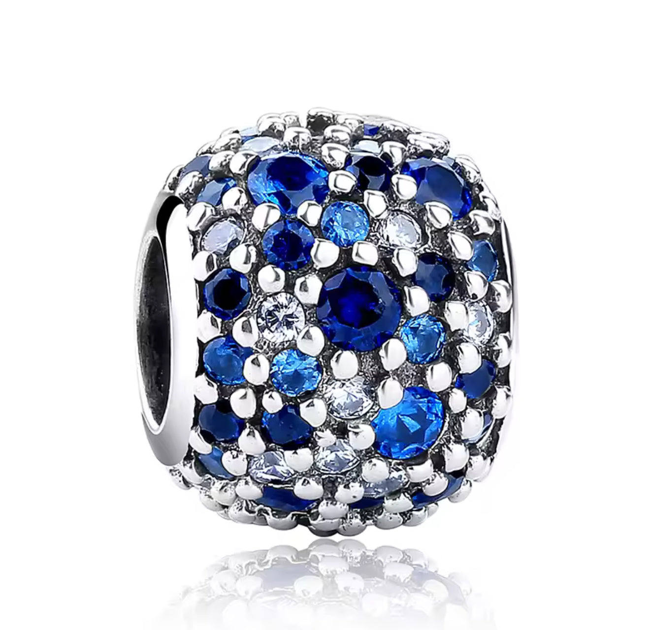 Belle is a pavé masterpiece, crafted in 925 sterling silver and adorned with an array of deep sapphire-blue and crystal-clear cubic zirconia stones. The clustered setting creates a sense of dimensional shimmer — like city lights reflected on midnight waters. Bold yet refined, Belle is designed to catch the eye and never let go.