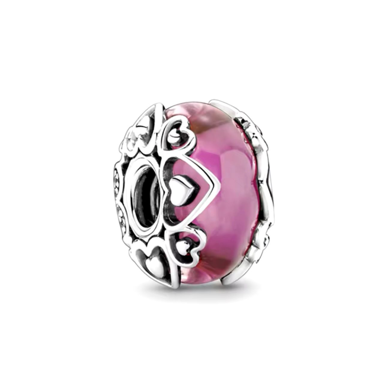 Add a touch of romance and elegance to your jewelry with the Blush Charm. Featuring a vibrant pink glass centerpiece encased in delicate sterling silver filigree adorned with heart motifs, this charm radiates charm and femininity. Perfectly versatile, it complements any bracelet or necklace, making it an essential addition to your collection.