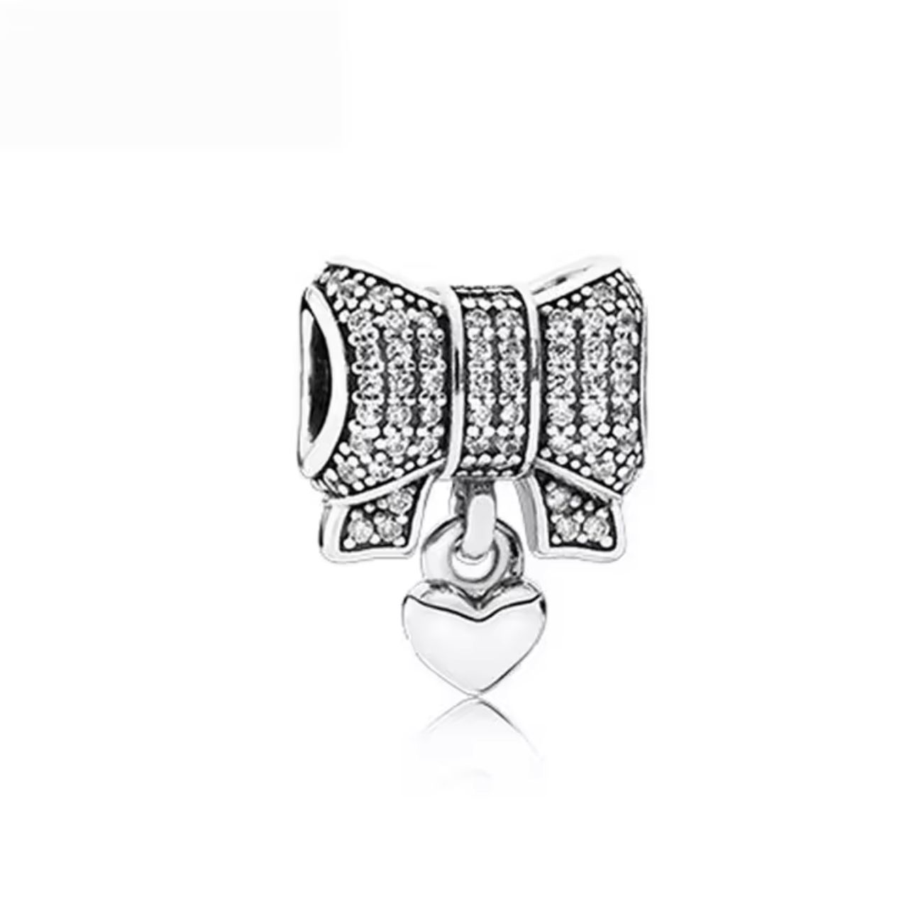 • Elegant bow design with a heart dangle detail