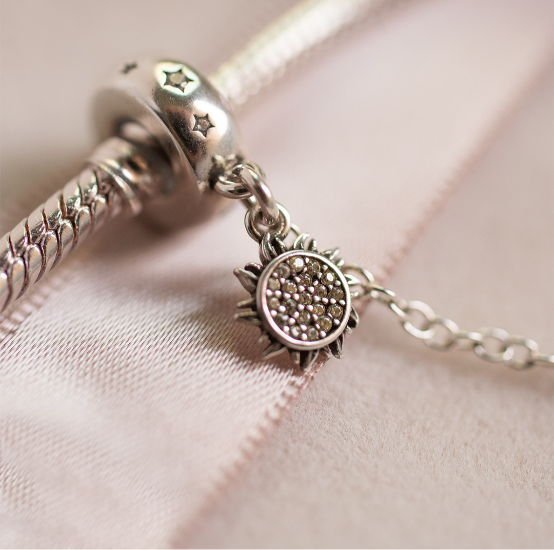 Let the Celeste Safety Chain be your guide, holding your charms in place and balancing the brilliance of day and night on your wrist.