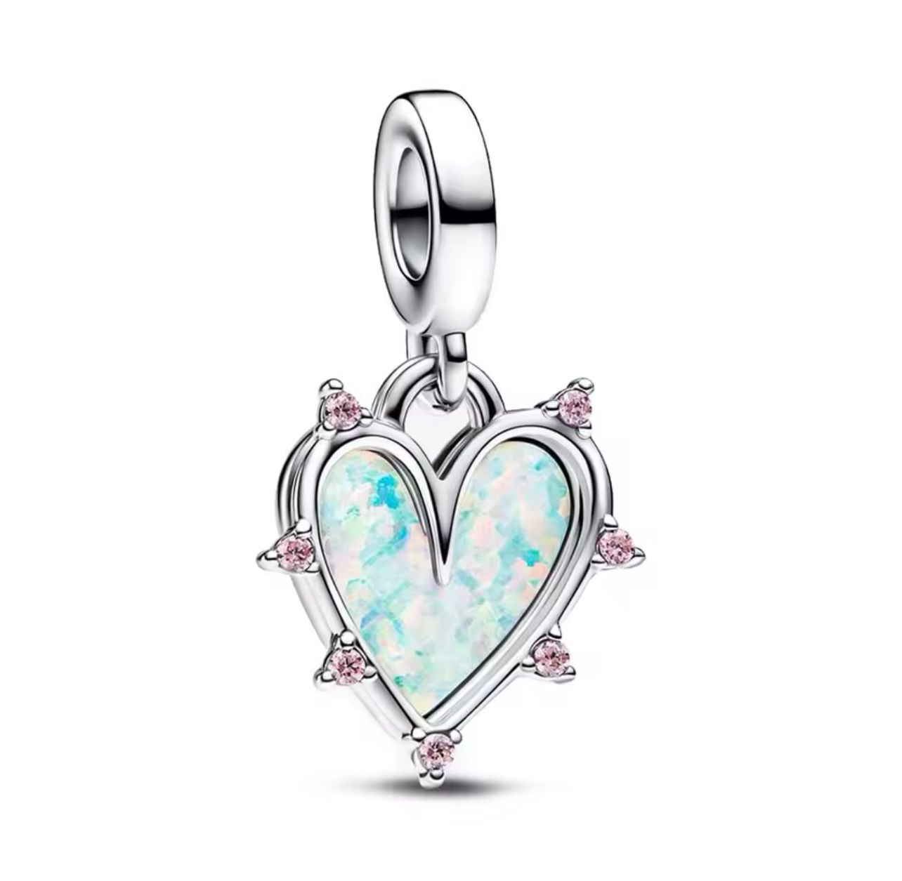 Illuminate your jewelry collection with the radiant beauty of the Eos Charm. Featuring a heart-shaped opalescent centerpiece surrounded by sparkling pink cubic zirconia, this charm captures the soft hues of dawn. Set in 925 Sterling Silver, the Eos Charm is a symbol of new beginnings and timeless elegance.