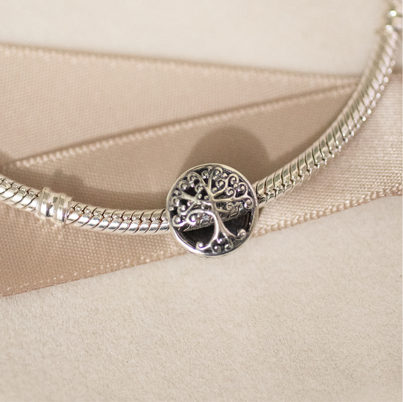 Celebrate the strength and interconnectedness of life with the beautifully crafted Gaia Charm. Made from 925 sterling silver, this charm features an intricate Tree of Life design, symbolizing growth, harmony, and renewal. The detailed openwork and polished finish give this charm an elegant and timeless appeal, perfect for adding a meaningful touch to any bracelet.