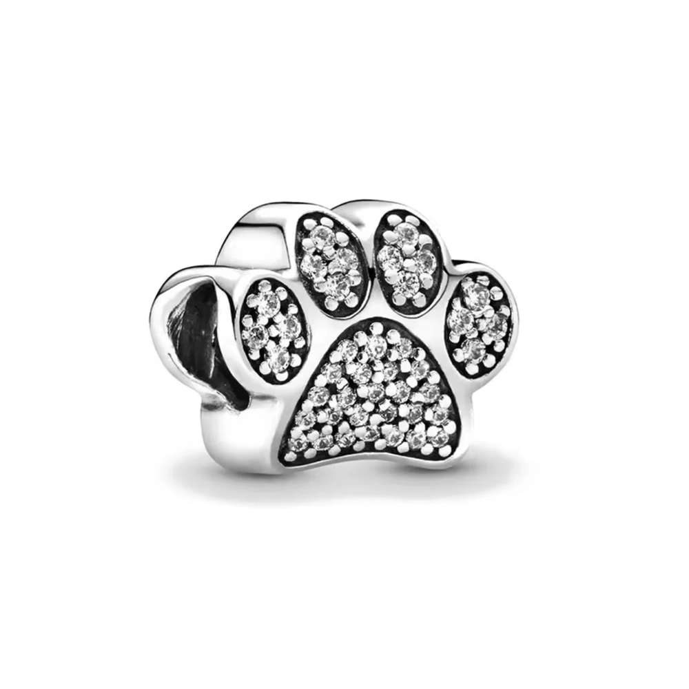 Celebrate your love for pets with the charming Leo Charm. Crafted from 925 sterling silver, this delightful paw print charm is adorned with sparkling cubic zirconia stones, creating a playful yet elegant design. Each stone is meticulously set to highlight the intricate details of the paw print, making it a perfect addition to any animal lover’s bracelet.